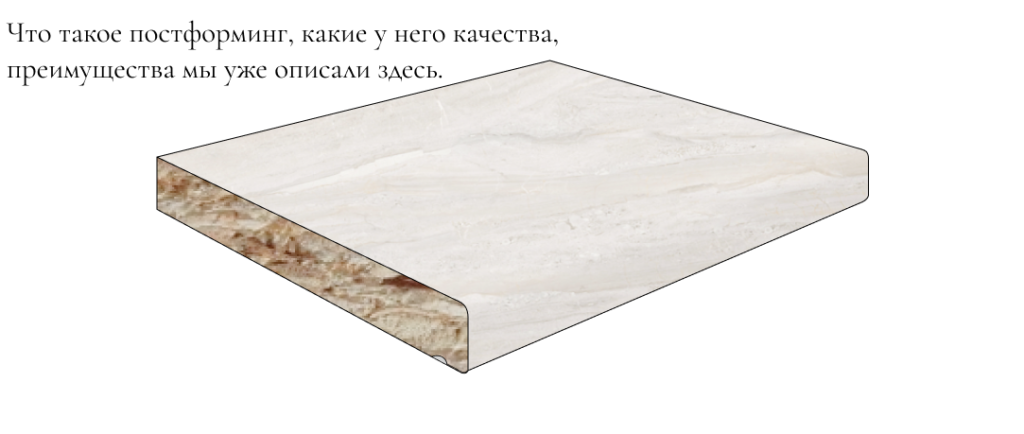 Часто можно наблюдать ситуацию, когда при покупке жилого помещения люди оставляют обычные пластиковые подоконники, полагая, что это последнее над чем стоит заморачиваться. Но суть в деталях! Тонкость картинного интерьера заложена как раз в местах не моментально притягивающих взгляд, а раскрывающихся во всей красе по мере детального рассмотрения. Именно поэтому подоконник в технике постформинга и является отличным дизайнерским решением. Он минималистичен в своей бесшовности и монолитности. Придает мягкости и сглаженности.